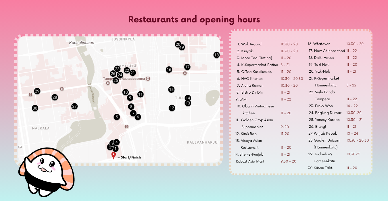 With SushiAppro, students get to tour Asian restaurants in Tampere, with an impressive 30 participating locations! In addition to traditional sushi, there will be other Asian delicacies such as mochi, gyoza, and bubble tea. There’s something for every taste, including options for most allergies and vegans.